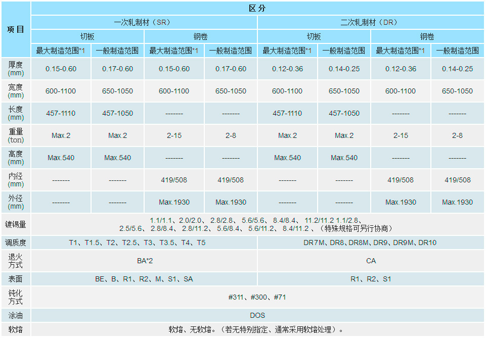 *2:BA材(T1、T1.5、T2、T2.5、T3):推薦使用具有與BA材相同特性且綜合性能更優(yōu)的超低碳連續退火鋼(IF鋼)。